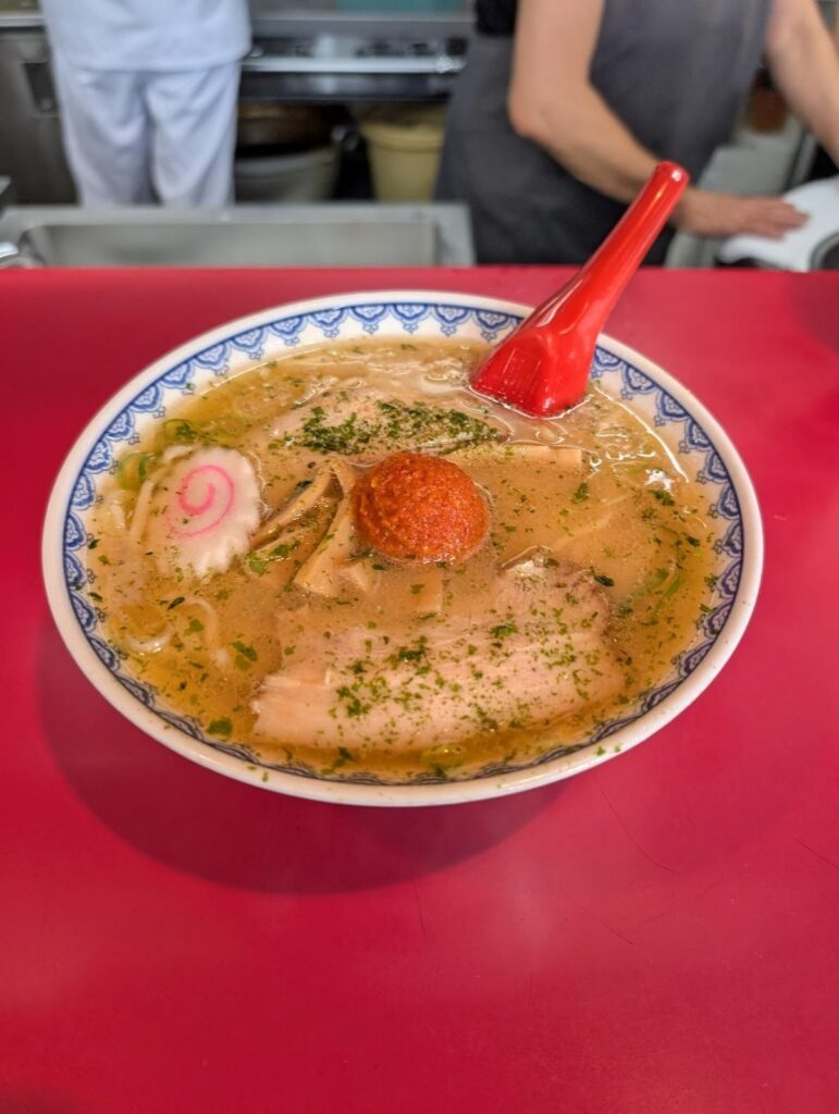 この日は空き時間を使ってラーメンを食べに行くことに。龍上海というお店に向かいます。龍上海は山形県のご当地ラーメンである赤湯ラーメンのお店です。横浜にあるラーメン博物館で出店していたり、セブンイレブンではカップラーメンが発売されていたりする有名店です。飛飛丸が行ったときは30分ほど並びました。